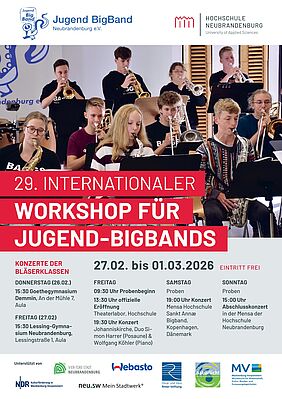Auch in diesem Jahr findet der Internationale Bigband-Workshop wieder in Neubrandenburg statt. Es nehmen insgesamt 12 Bigbands sowie Bläserklassen der Gymnasien teil. Die Bigbands kommen aus Kopenhagen, Dänemark und aus Liberec, Tschechien sowie aus Mecklenburg-Vorpommern und den befreundeten Bundesländern Brandenburg, Sachsen und Niedersachsen. Die Veranstaltung steht unter der Schirmherrschaft von Oberbürgermeister Klose und wird in enger Zusammenarbeit mit der Hochschule Neubrandenburg und der Kreismusikschule Kon.centus durchgeführt.