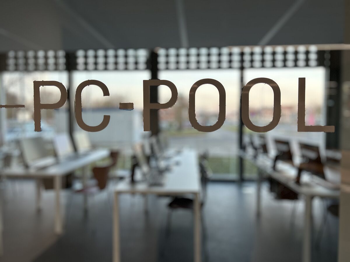 Im Erdgeschoss befindet sich ein PC-Pool, eine Anmeldung mit Hochschulaccount ist erforderlich.