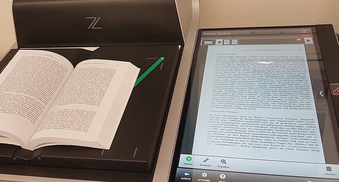 Seit Beginn des Wintersemesters 2015/16 steht in der Hochschulbibliothek ein Zeutschel zeta Buchaufsichtscanner für Sie zur Verfügung. Die Bedienung ist einfach und die Bücher werden geschont, da von oben gescannt wird. Sie können in kurzer Zeit gedruckte Medien bis Größe A3 digitalisieren und im gewünschten Dateiformat auf Ihrem USB-Stick abspeichern. Bei Fragen zur Bedienung sprechen Sie uns an.