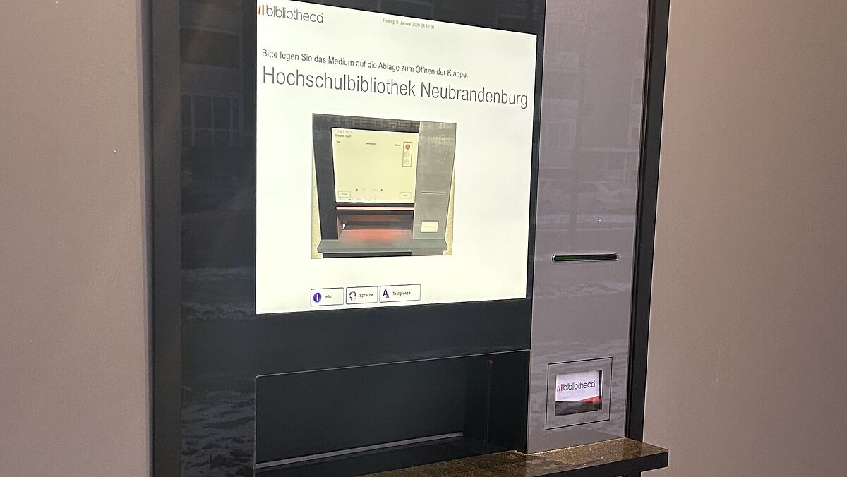 Zur Selbstverbuchung folgen Sie bitte den Anweisungen am Bildschirm. Für die Nutzung des Selbstverbuchungsautomaten benötigen Sie Ihre Hochschulkarte bzw. Ihren Bibliotheksausweis.