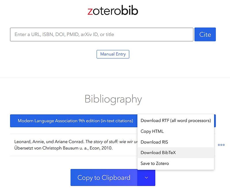 Einzelne Zitate erstellen mit dem online Tool zoterobib | zbib.org