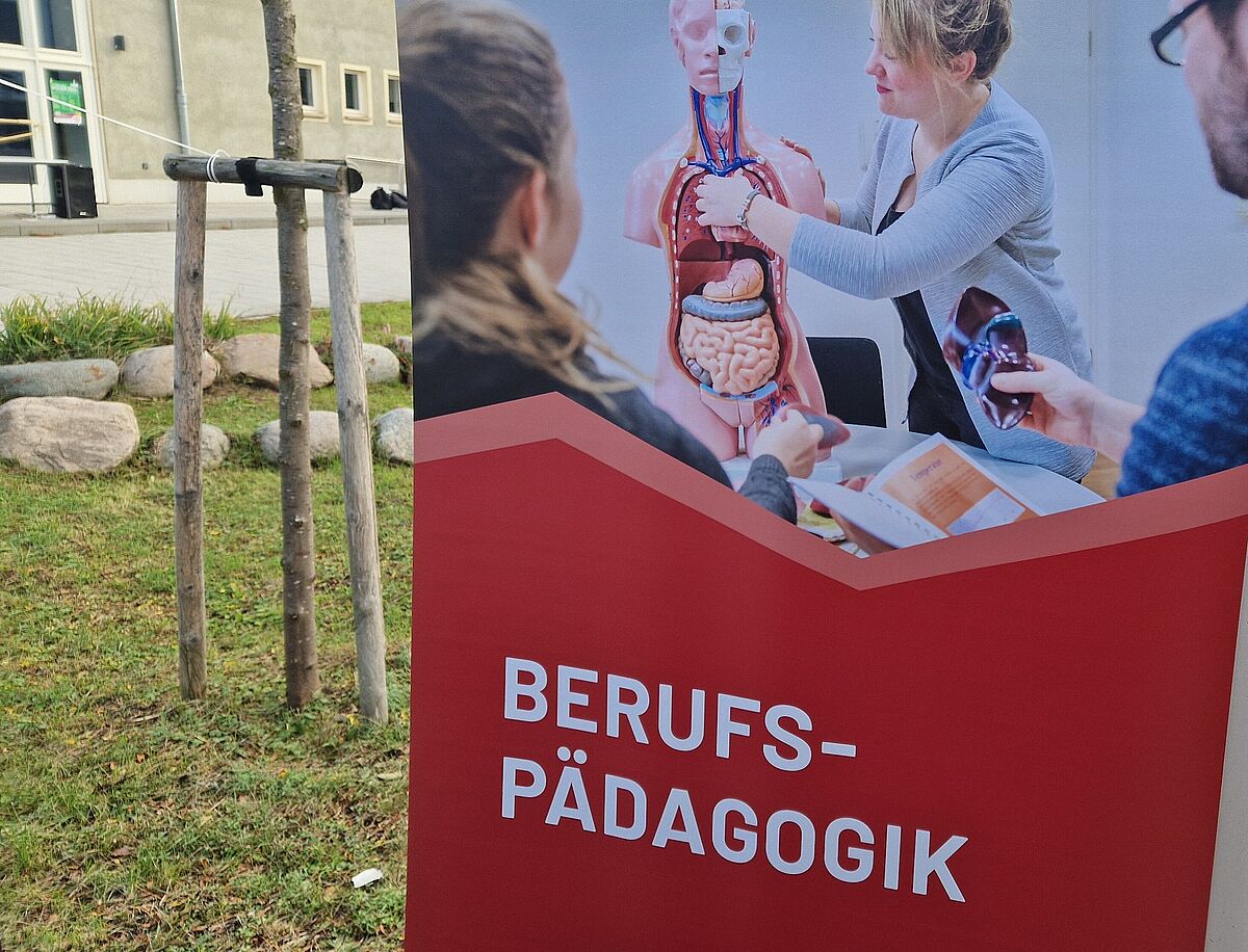 Am Donnerstag, den 9. Oktober, lud das Regionale Berufliche Bildungszentrum GeSoTec Neubrandenburg zum Gesundheitstag ein. Johanna Hoefs und Max Kreß, beide Lehramtsstudierende der Hochschule Neubrandenburg, berieten zusammen mit Clara Schmidt angehende Fachkräfte aus den sozialpädagogischen Bildungsgängen sowie aus den Pflege- und Gesundheitsberufen zu den Möglichkeiten des Lehramtsstudiums und den Studienangeboten im Fachbereich Gesundheit, Pflege und Management. Der Infostand der Hochschule überzeugte nicht nur durch hilfreiche Informationen und Goodies, sondern auch mit einem Quiz zum Thema „Unnützes Wissen to go“ – selbstverständlich mit einem Bezug zur Gesundheit und Pflege.