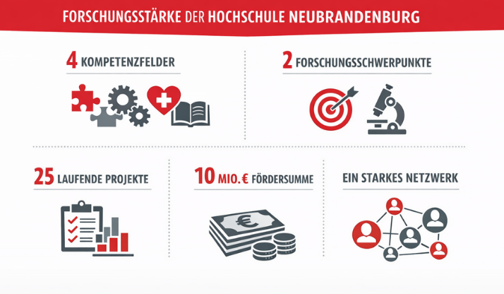 An der Hochschule Neubrandenburg ist Forschung mehr als Erkenntnisgewinn – sie gestaltet aktiv mit. Unsere interdisziplinären Ansätze greifen aktuelle Herausforderungen auf und verbinden Theorie mit Praxis. Ob Gesundheit, Ernährung oder nachhaltige Regionalentwicklung: Unsere Forschung wirkt – regional, national und international.