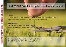 Vortragender: Dietmar Braune, Staatliche Schlösser, Gärten und Kunstsammlungen Mecklenburg-Vorpommern Ort: Haus 2, Hörsaal 4 Die Vorlesungsreihe findet regelmäßig jeden Mittwoch statt. Weitere Themen werden laufend angekündigt.