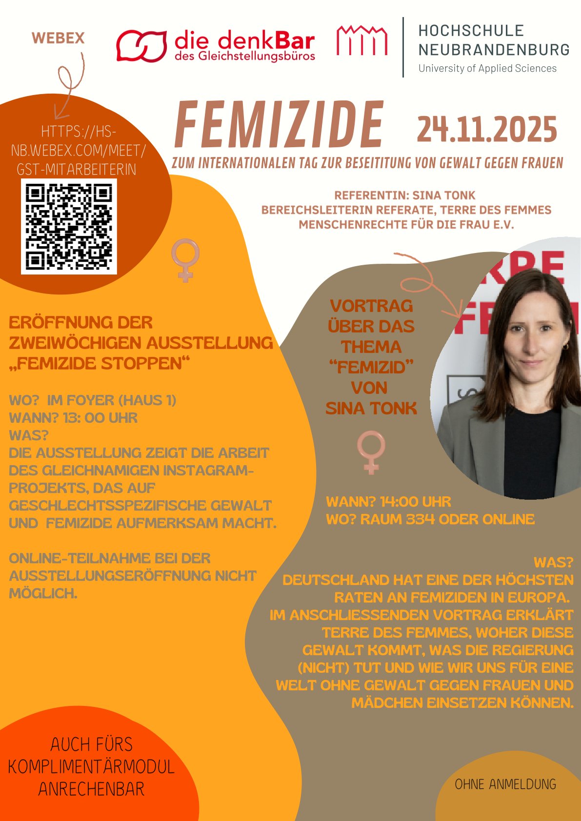 Im Rahmen des Internationalen Tages gegen Gewalt an Frauen laden wir euch herzlich ein, an der Eröffnung unserer kleinen Ausstellung teilzunehmen und in einem spannenden Vortrag mehr über die Hintergründe dieser wichtigen Thematik zu erfahren!