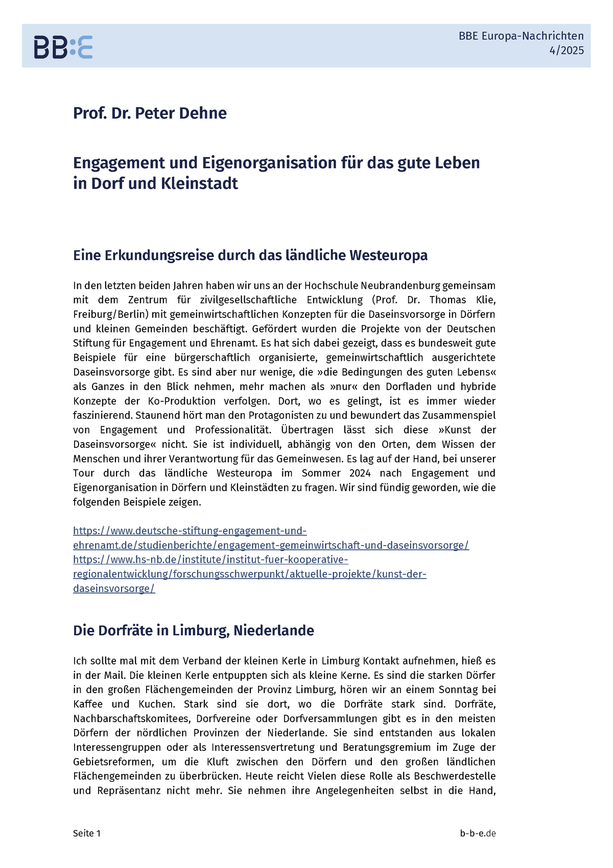 von Peter Dehne erschienen in BBE Europa-Nachrichten 4/2025, Artikel zum Herunterladen