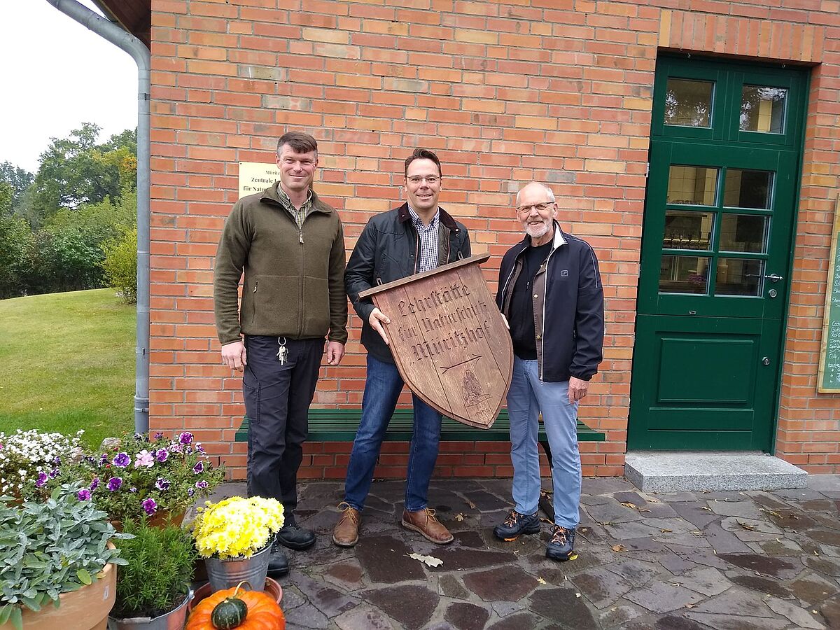 Heute übergaben David Wülferling, im Lebenshilfswerk Waren für Liegenschaften zuständig, und Andre Neitzel, der Leiter des Landschaftspflegehofs Müritzhof bei Waren, dem Studienarchiv Umweltgeschichte an der Hochschule Neubrandenburg ein historisch bedeutsames Naturschutzschild.