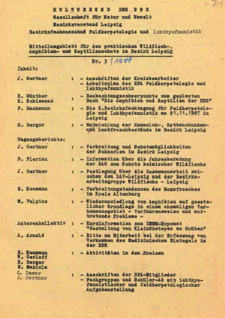 Herausgegeben vom Kulturbund der DDR, Gesellschaft für Natur und Umwelt, Bezirksvorstand Leipzig, Bezirksfachausschuss für Feldherpetologie und Ichthyofaunistik
