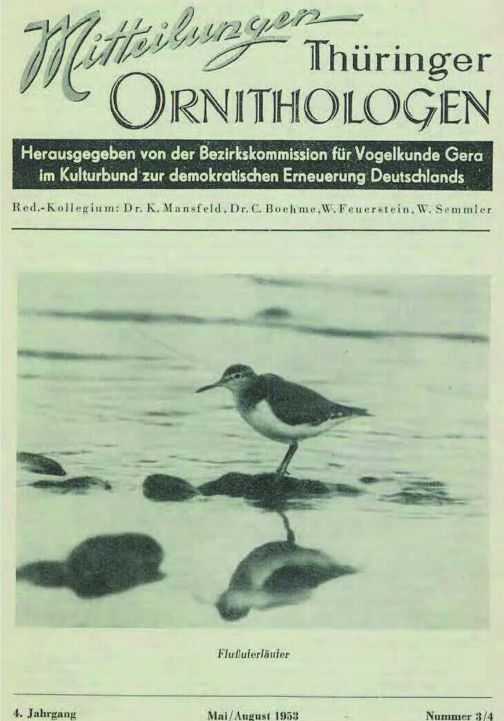 Herausgegeben 1950 von Hans Münch, 1951 von der Landeskommission für Vogelkunde im Kulturbund zur demokratischen Erneuerung Deutschlands, 1952 von den Landeskommissionen für Vogelkunde Erfurt, Gera und Suhl im Kulturbund zur demokratischen Erneuerung Deutschlands, ab 1953 von der Bezirkskommission für Vogelkunde Gera im Kulturbund zur demokratischen Erneuerung Deutschlands