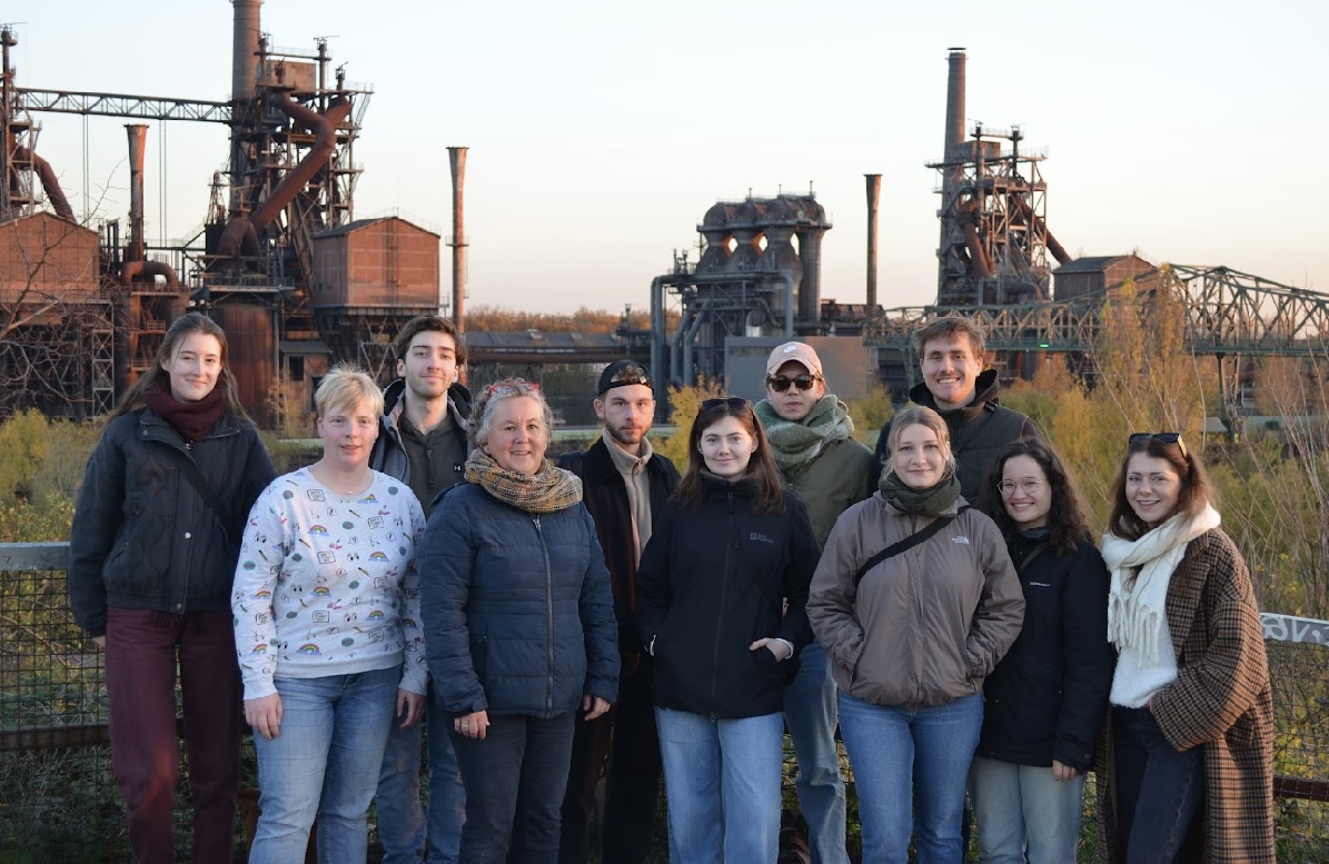 Der Freitag stand ganz im Zeichen der Industriekultur. Im Landschaftspark Duisburg-Nord wurden wir von dem Historiker Christoph Willmer und der zuständigen Vertreterin in der Gartendenkmalpflege des LVR – Amt für Denkmalpflege im Rheinland, Frau Dr. Kerstin Walter durch das ehemalige Hüttenwerk geführt. Thematisiert wurden unter anderem die gestalterischen Konzepte der Umnutzung, Herausforderungen in der Pflege und die Bedeutung solcher Orte im Spannungsfeld von Denkmalpflege, Freiraumplanung und Erinnerung. Abends erlebten wir die eindrucksvolle Lichtinstallation des Parks: rostige Türme, Rohre und Silos wirkten in der nächtlichen Beleuchtung fast surreal. Für uns ein starker Abschluss innerhalb der fachlichen Auseinandersetzung mit dem Raumwandel.