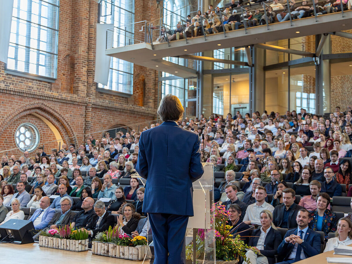 Am 29. September 2025 hieß die Hochschule Neubrandenburg ihre neuen Erstsemesterstudierenden offiziell willkommen – und das, wie jedes Jahr, in der ehrwürdigen Konzertkirche Neubrandenburg. Zwischen den gotischen Mauern startete für die Studienanfänger*innen ein neuer Lebensabschnitt.