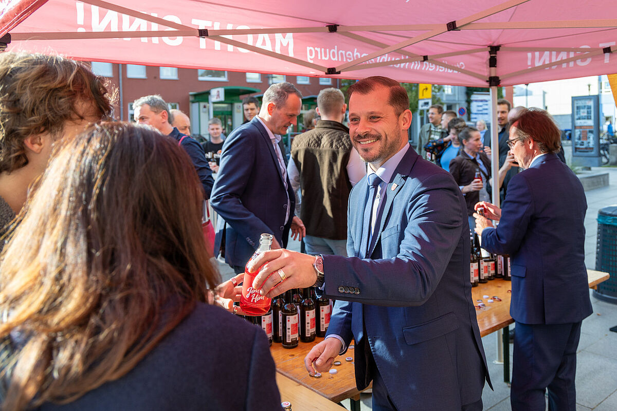 Nach dem offiziellen Teil in der Konzertkirche hieß es übrigens: Freibier! Das im Studiengang entwickelte Bier „Campus BRÄU“ wurde kostenfrei auf dem Vorplatz der Konzertkirche ausgegeben.