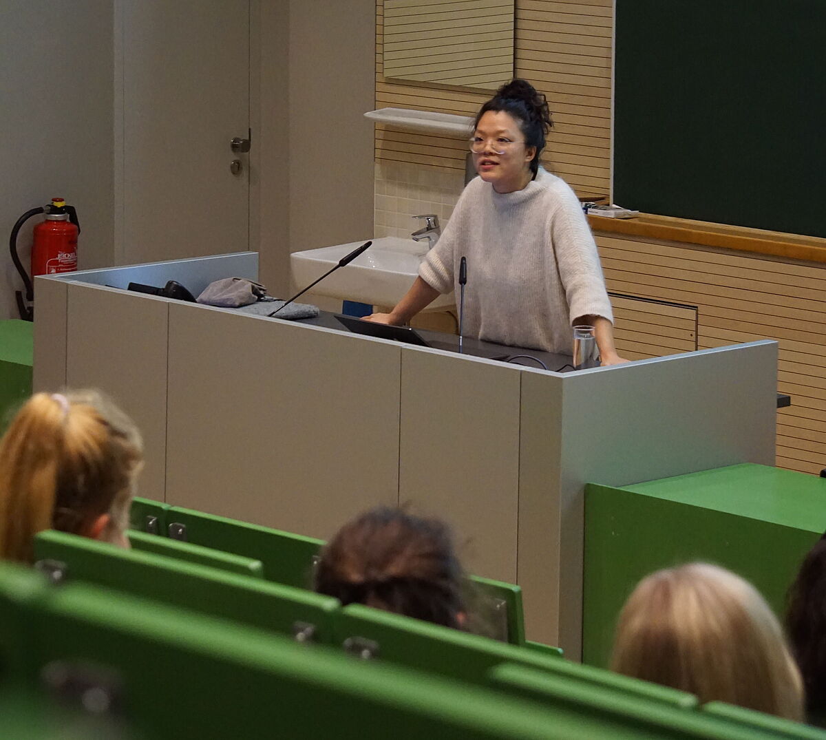 Hoa Mai Trần, Kindheitspädagogin sowie Erziehungs- und Bildungswissenschaftlerin an der Universität Siegen, hielt einen Vortrag zum Thema „Brücken bauen – Chancen schaffen: Pädagogik für Kinder mit Flucht- und Migrationserfahrung“. Darin präsentierte sie Ergebnisse einer partizipativ mit Kindern durchgeführten Feldforschung, die sich mit deren Lebensbedingungen und gesellschaftlichen Zuschreibungen auseinandersetzte. Ein besonderer Schwerpunkt lag dabei auf der professionellen pädagogischen Begleitung von Kindern mit Flucht- und Migrationserfahrungen auf Grundlage der Prinzipien vorurteilsbewusster Bildung und Erziehung.