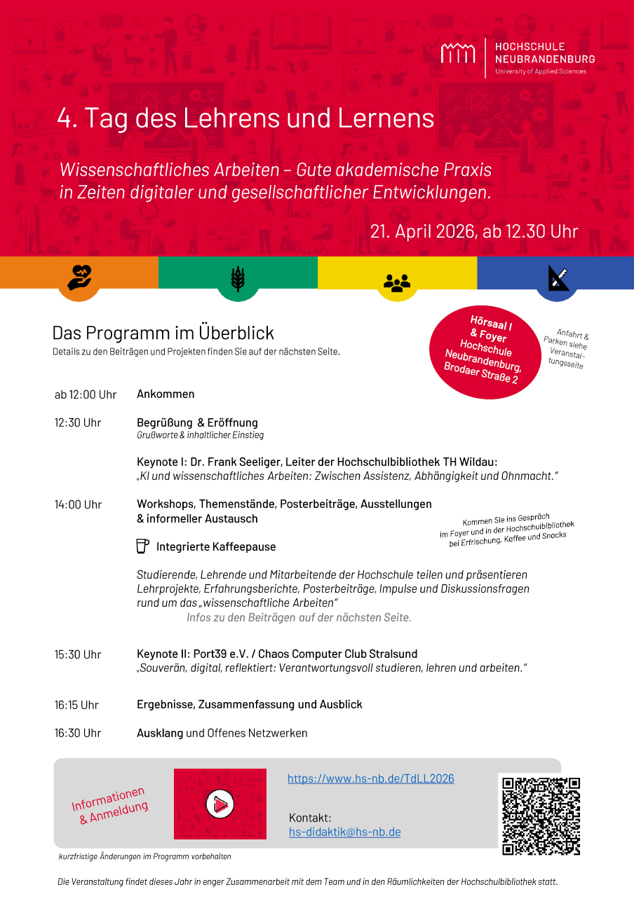 Der 4. Tag des Lehrens und Lernens findet statt am Di., 21. April 2026, ab 12:30 Uhr.