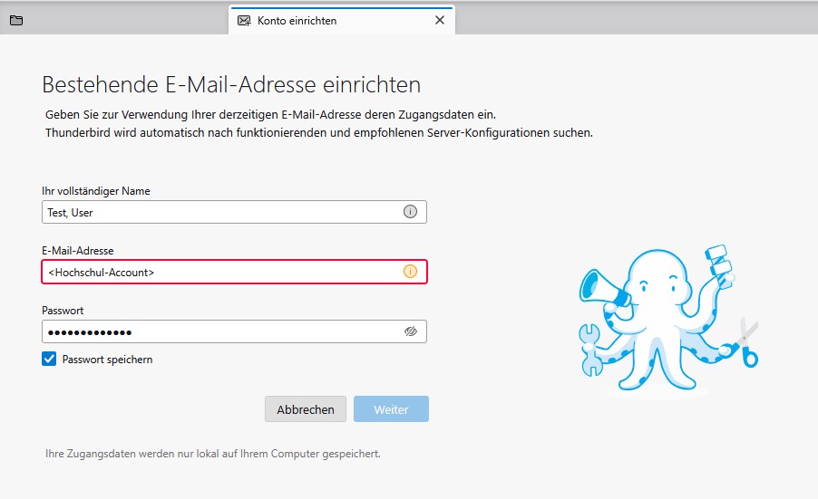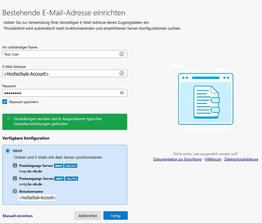 Mozilla Thunderbird erkennt i.d.R. alle notwendigen Einstellungen und ist nun "bereit" 😎