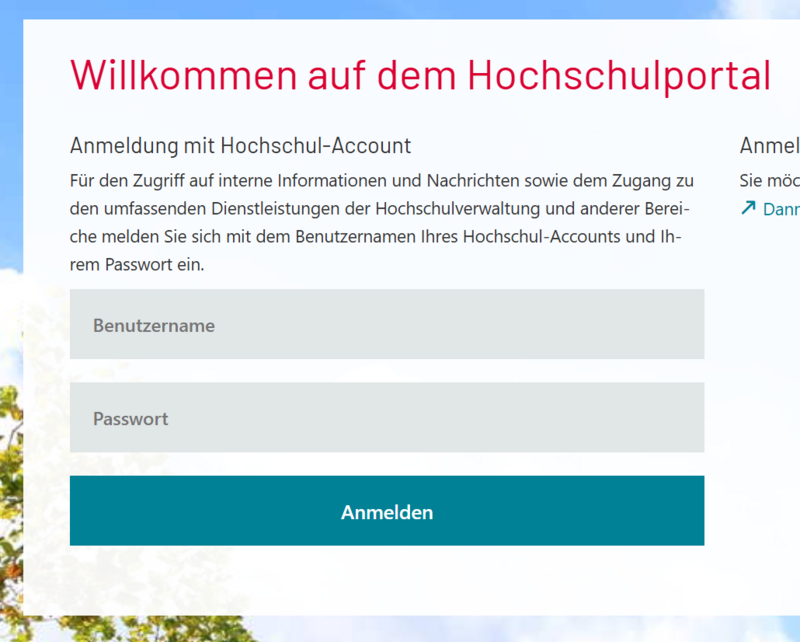Das HS-Portal ist über die Adresse https://www.hs-nb.de/portal zu erreichen. Hinweis: Für die Anmeldung ist ein gültiger Hochschul-Account notwendig.